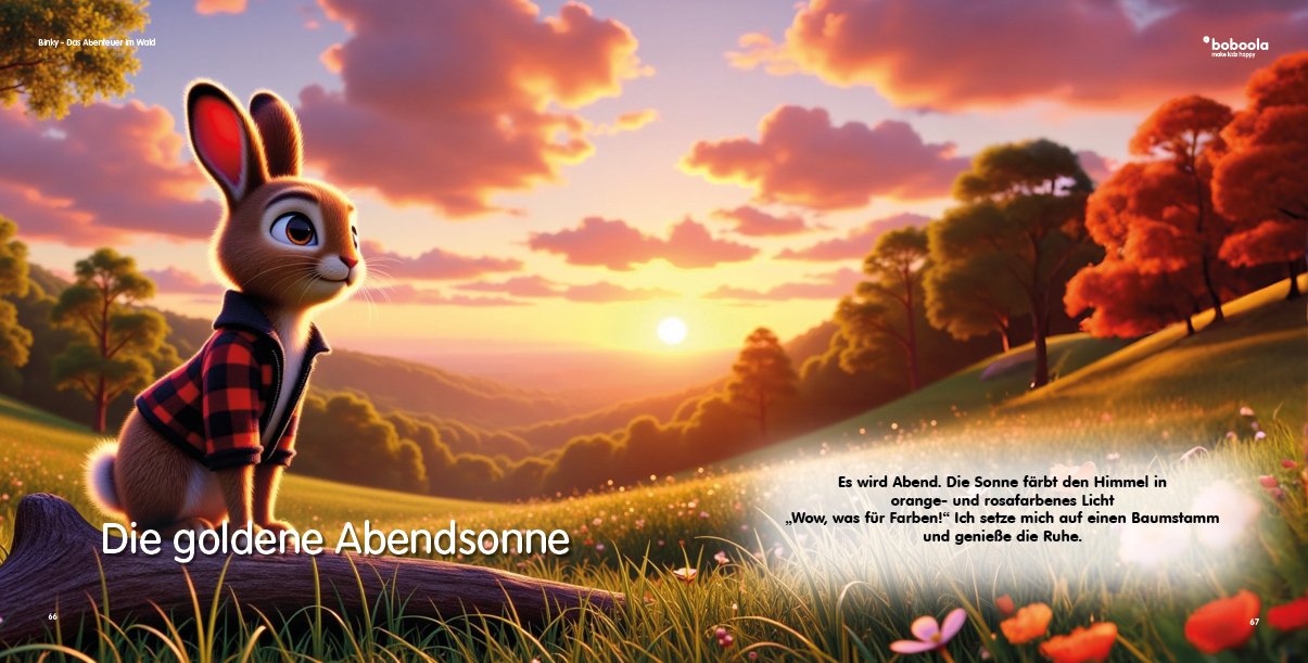 In diesem wunderschönen Kinderbuch begleiten wir Binky auf seiner Abenteuerreise durch den Wald. Vom Erwachen im Morgengrauen, der Begegnung mit süßen Tieren und wunderschönen Naturerlebnissen bis hin zum verdienten Schlaf in seinem niedlichen Zuhause.